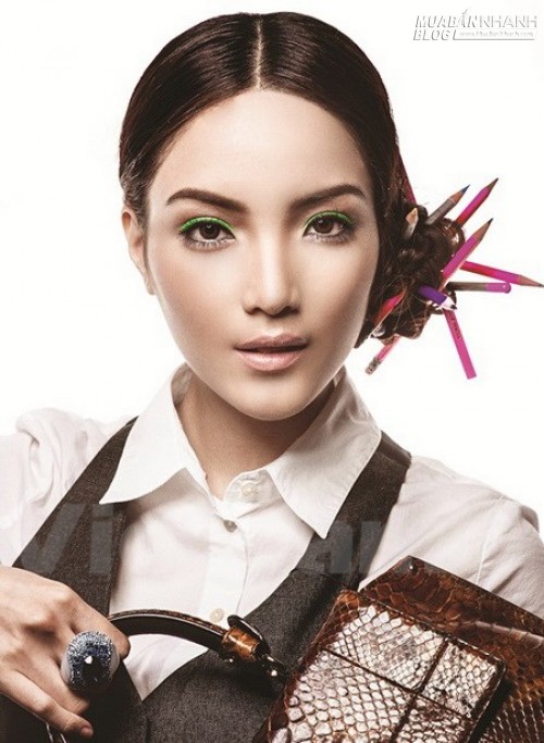 Cô gái văn phòng năng động có cách trang điểm khiến bảy ngày đi làm không nhàm chán. Phấn nhũ mắt màu xanh lá cho mí trên và nhũ bạc cho mí dưới khiến gương mặt trở nên ấn tượng mà không cần nhiều sự trợ giúp của phấn má hay son môi.