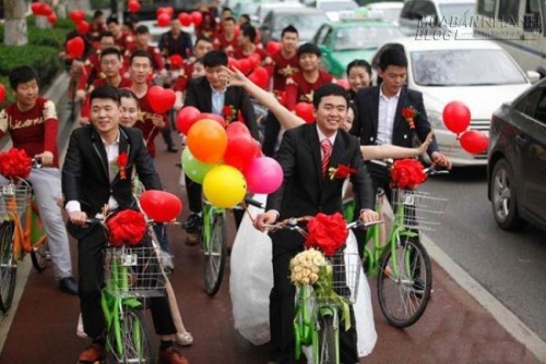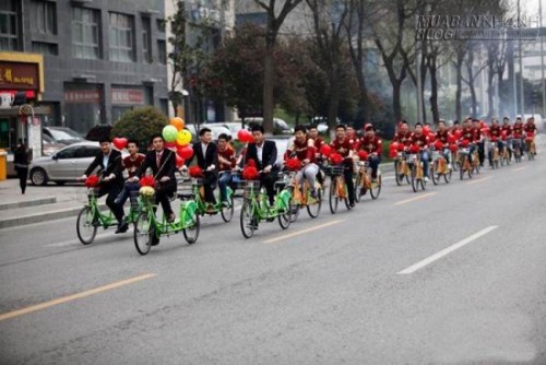 Sau những xôn xao về màn cầu hôn bằng cách đạp xe đạp vượt 3000km, giờ đây cư dân mạng Trung Quốc lại được phen bàn tán với màn rước dâu gây chú ý bởi dàn xe đạp đôi thân thiện với môi trường.