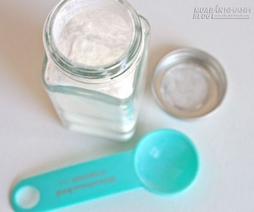 + Baking soda (bột nở): Đây là thành phần giống như bột bắp, giúp hấp thu lượng lớn bụi bẩn trên tóc bạn. Tuy nhiên với tóc yếu, bột nở dễ gây hại cho tóc vì vậy bạn chỉ nên dùng lượng nhỏ để tạo ra dầu gội khô. Trong trường hợp tóc bạn không quá dầu, bạn có thể bỏ qua thành phần này. (Nguyên liệu có thể tìm mua tại các quầy thuốc, cửa hàng bán nguyên liệu làm bánh).