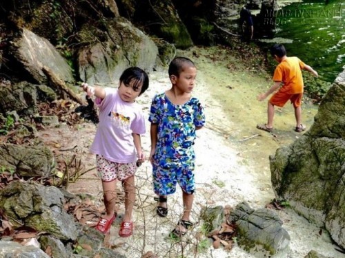 Con tàu rời đi, hòn đảo và vịnh nước xanh trở nên yên tĩnh lạ thường. Bà nội bọn trẻ nhà tôi mắc võng nghỉ ngơi dưới bóng cây. Các em trai sửa soạn đồ nghề câu cá, chuẩn bị nhóm lửa nấu bữa trưa. Tôi dẫn các con khám phá hòn đảo. |