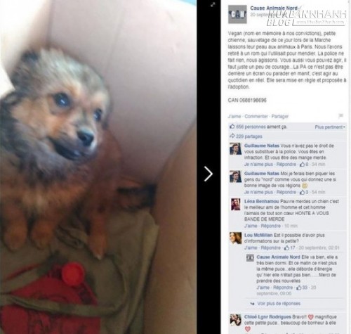 Vài ngày sau, trên trang web của tổ chức bảo vệ động vật Pháp CAN (Cause Animal Nord), đăng tải những hình ảnh và video này với tiêu đề “Chúng tôi lấy nó từ tay một người vô gia cư, mặc kệ ông ta cầu xin, cảnh sát cũng không can dự, bạn cũng có thể làm được, chỉ cần một chút dũng cảm thôi”.
