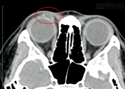 Tại đây, bản chụp CT đôi mắt tìm thấy một vết thương trên mí mắt do một vật cạnh cứng và cũng đã được lấp đầy bởi chất lỏng. điều này làm cho các bác sĩ tin rằng có một u nang trên mắt phải của cô.