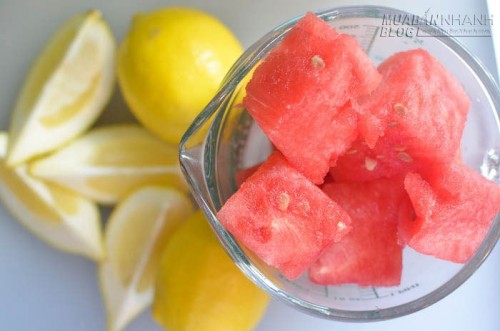 – Đổ nước ép dưa hấu vào nồi và đun sôi trong vài phút. Sau đó, đổ tiếp nước cốt chanh vào nồi. Tiếp tục đun sôi nhỏ lửa cho đến khi lượng nước trong nồi còn khoảng 1/2.