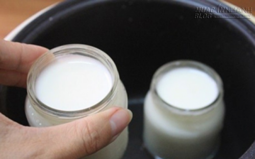 – Cho sữa chua ra hủ nhỏ, sau đó cho vào nồi cơm điện. Cho thêm nước ấm khoảng 45 độ C vào nồi, ngập khoảng 2/3 hủ sữa chua. Đóng nắp nồi cơm lại để ủ, để trong vòng 4-6 tiếng. Sau 2 tiếng, nên bật chế độ Warm của nồi cơm khoảng 15 phút để nước trong nồi không bị nguội đi. Tuy nhiên không nên bật quá lâu vì nếu nước bị nóng quá cũng ảnh hưởng đến chất lượng của sữa chua đấy nhé!