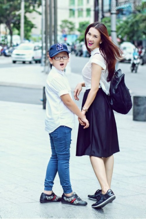 Người mẫu - diễn viên Anh Thư vừa thực hiện bộ ảnh trên đường phố Sài Gòn cùng con trai Tiểu Long. Hai mẹ con mặc trang phục đơn giản, năng động.