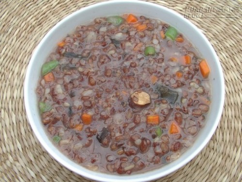 Bài thuốc có tác dụng bổ phổi khỏi ho, chữa lao phổi, viêm khí quản mạn: Gạo lứt 100g, phổi lợn 250g. Cách chế biến: Gạo vo sạch để ráo, cho gạo, đun nhỏ lửa, ninh cháo chín nhừ. Sau đó cho phổi đã thái nhỏ vào, thêm gia vị, gừng, hành hoa, bột canh. Ngày ăn 1 bát chia 2 lần, 7 ngày một liệu trình.