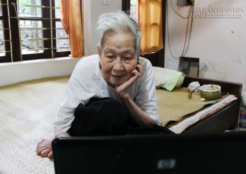 Trong căn phòng yên tĩnh ở Xa La (Hà Đông, Hà Nội), cụ bà Lê Thi thong thả ngồi lướt mạng Internet. Mọi ồn ào, xô bồ của phố thị dường như bị ngăn lại bên ngoài cửa. Năm nay đã 93 tuổi, tóc bạc, lưng còng nhưng cụ còn rất minh mẫn, vào mạng mà không cần dùng kính.