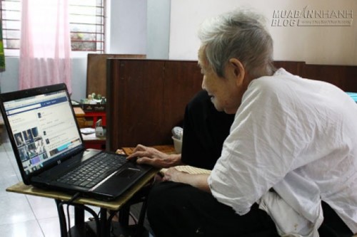 Chiếc máy tính đã cũ, những chữ cái, con số trên bàn phím được cụ dùng bút màu trắng tô lại cho to hơn. Sau khi chăm chú đọc tin tức rồi mở Facebook, cụ xem bảng tin, like ảnh của người này, comment trạng thái của người kia.