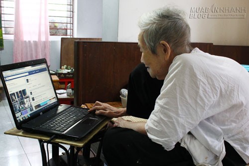 Bà cụ lên mạng ghi nhật ký, lướt facebook, trò chuyện với người thân. Ảnh: Hoàng Phương. |