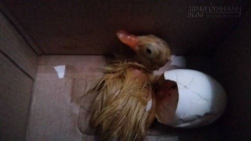 Một chú vịt tự phá vỏ trứng chui ra dù chỉ được đặt trong hộp giấy