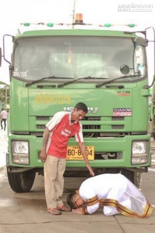 Tân cử nhân Kalangnalong vô cùng thành kính quỳ gối cảm tạ công ơn nuôi dưỡng của cha trước chiếc xe chở rác của ông.