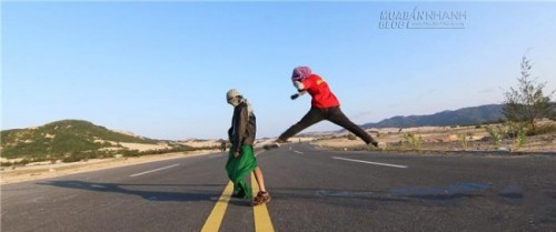 Đây là toàn cảnh khi xuất phát. Những bước chân lầm lũi tiến vào trận địa “đồi cát”. Dưới cái nắng giòn giã của miền Nam Trung bộ, việc đi bộ ở nhiều địa hình khác nhau, lúc trên triền cát, lúc xuống dốc những con đường khô cằn, cái nắng trắng trời giữa cát và mây làm hao mòn nhựa sống.