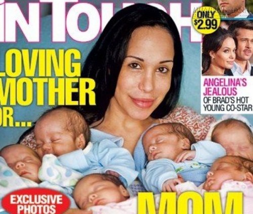 Một người phụ nữ sống tại thành phố La Habra, bang California (Mỹ) tên là Nadya Suleman đã trở nên nổi tiếng trên các phương tiện truyền thông sau khi cô sinh liền 8 đứa con, gồm có hai gái và sáu trai, vào tháng 1/2009. Đây là kết quả của công nghệ thụ tinh trong ống nghiệm.