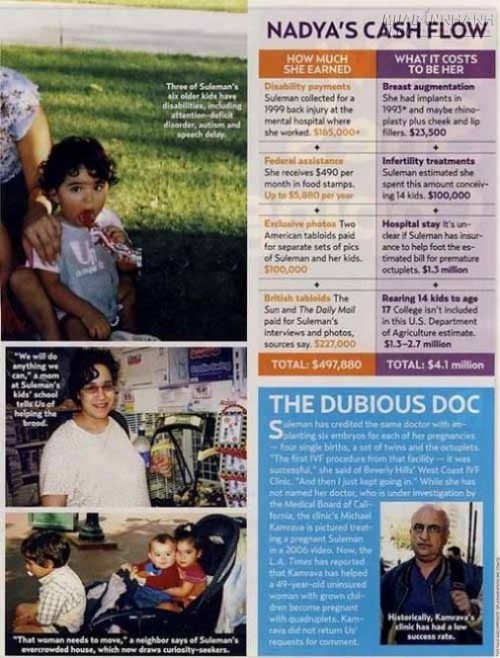 Bác sĩ Michael Kamrava, người thực hiện ca thụ tinh trong ống nghiệm cho Suleman, phải đối mặt với nhiều chỉ trích khắc nghiệt khi cấy tới 12 phôi cho cô. Vị bác sĩ này sau đó đã bị thu hồi giấy phép hành nghề.