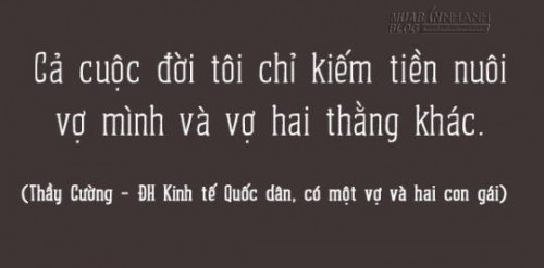 2. Cả cuộc đời tôi chỉ kiếm tiền nuôi vợ mình và vợ hai thằng khác. (Thầy Cường - ĐH Kinh tế Quốc dân, có một vợ và hai con gái)