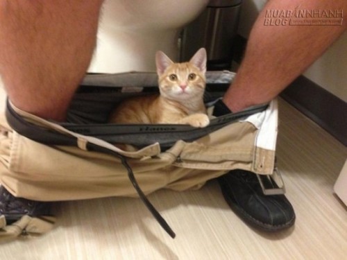 Quả là thông minh khi những chú mèo này rất biết chọn nơi ấm áp để trú ngụ, đó chính là... đũng quần.