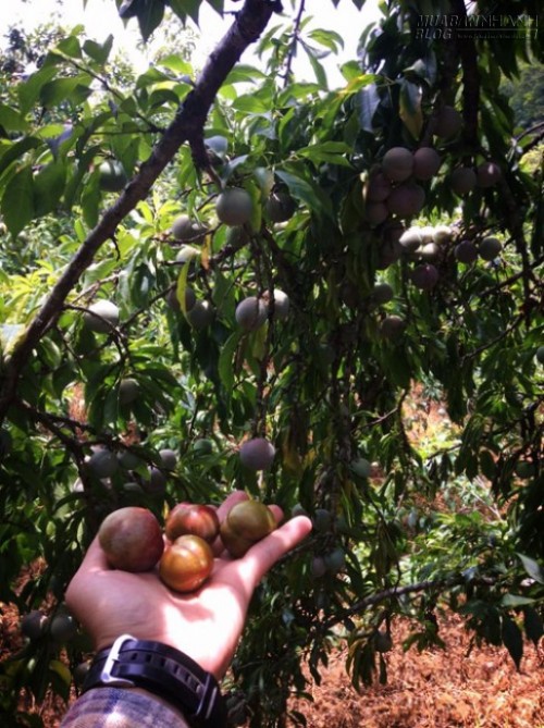 Những vườn mận bạt ngàn chạy tít từ chân núi tới gần đỉnh, những chùm mận sai lúc lỉu sẽ khiến du khách thích mê. Sẽ thật thích khi được mang theo các dụng cụ hái quả, ăn mận chính cây vẫn còn nguyên lớp phấn trắng.