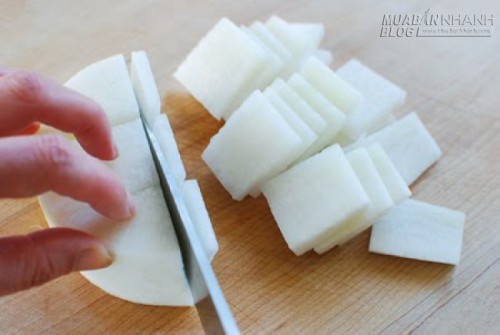 Bước 1: Rửa mặt sạch với nước ấm. Gọt củ cải đường, thái củ cải thành từng khúc.
