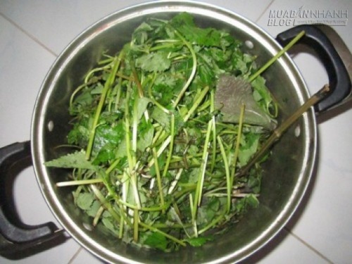 Kinh giới, tía tô, ngải cứu, mỗi loại 100mg, rửa sạch, đun sôi với 500ml nước sạch. Đổ nước lá vừa sôi ra một chiếc chậu nhỏ, bỏ thêm một nhúm muối và vắt vào ½ trái chanh.