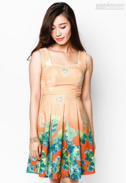 Đầm công sở xòe xếp ly màu cam, 56937, Anna Collection 0938959838 Blog MuaBanNhanh