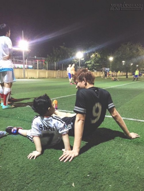 Trong khi đó, nam ca sĩ Tim cũng nhận được nhiều sự chú ý từ người hâm mộ khi chia sẻ hình ảnh con trai Sushi và bà xã Trương Quỳnh Anhcùng mặc trang phục đá bóng ra sân cỏ cổ vũ cho anh.