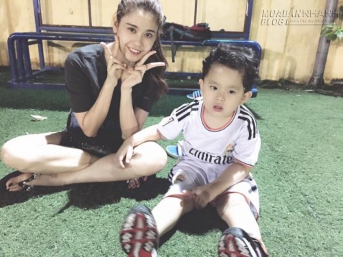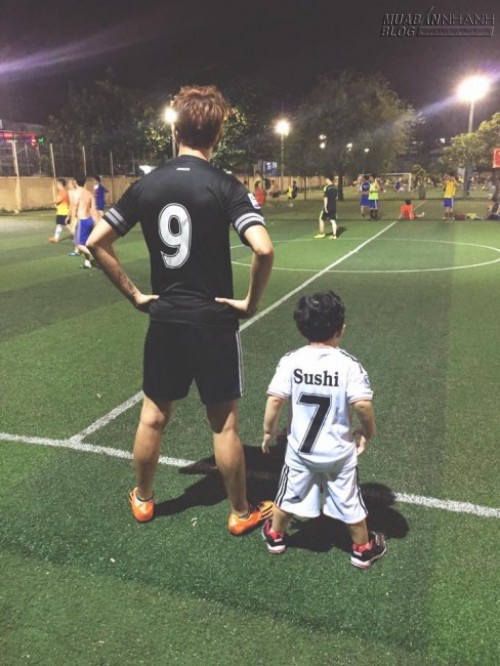 Tim khoe ảnh con trai Sushi mặc đồ đá bóng đến cổ vũ bố.