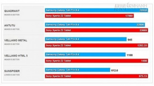 Điểm hiệu năng của máy khi so sánh với Galaxy Tab Pro 8.4