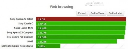 Thử nghiệm khả năng duyệt web cho thấy Sony Xperia Z2 Tablet xếp vị trí đầu tiên với 12 tiếng 53 phút cao hơn nhiều so với Apple iPad Air (10 tiếng 10 phút) và Samsung Galaxy Tab 10.1 Pro (9 tiếng 16 phút).