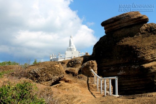 Trên núi gần tượng Phật Quan Âm có mỏm đá nhô ra, bên dưới là bãi xương rồng, vực thẳm sâu vài trăm thước, xa xa là xã Long Hải, biển trời bao la, tạo nên khung cảnh lý tưởng để thưởng ngoạn, chụp ảnh selfie tuyệt vời.