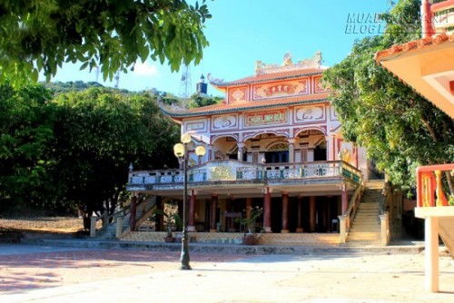Đứng từ cổ lầu mặt tiền của tòa chánh điện, bạn có thể nhìn ngắm toàn cảnh vẻ đẹp của đảo Phú Quý. Đâu đó xa xa là đồi núi thoai thoải, nương rẫy của người dân, bên kia là xóm làng trước biển cả mênh mông xa tít với những con thuyền vào ra nhộn nhịp.
