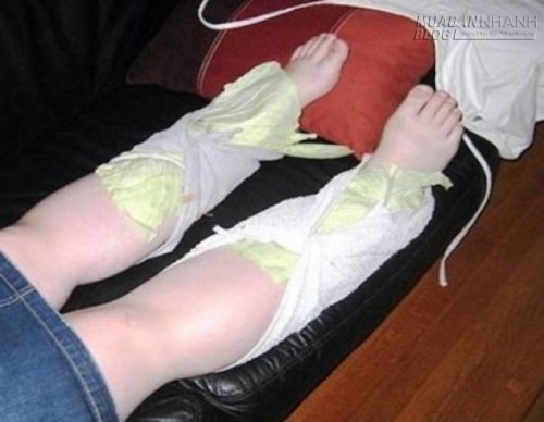 Bạn buộc 3-4 lá bắp cải dày xung quanh vùng bị bong gân, để suốt đêm.