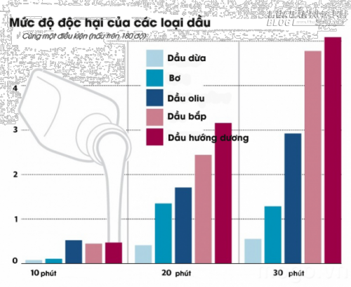 Dầu hướng dương, dầu bắp sinh ra andehit cao 200-300 lần khi đun nóng trên 180 độ C.