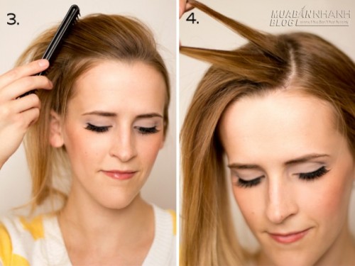 Chia tóc muốn tết với độ dày hợp lý và chải ngược lên phía trên. |