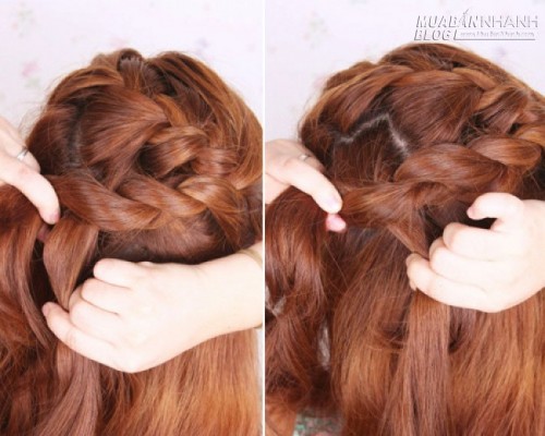 Chia phần tóc thành những lọn tóc nhỏ và tết vào nhau như hình. |