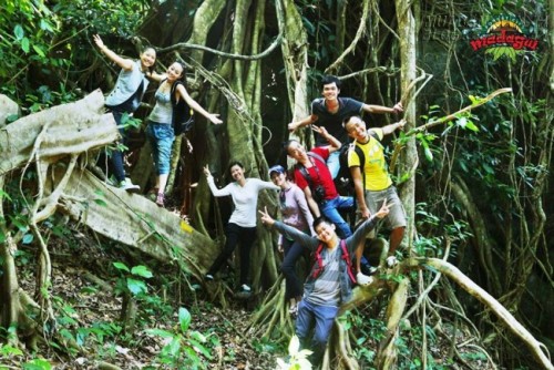 Du khách thích thú chụp ảnh với gốc cây cổ thụ