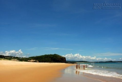 Nếu bạn đang tìm cảnh quan thiên nhiên hòa hợp của cỏ xanh, bãi cát trắng, biển trải dài thì Bãi Xép chính là sự lựa chọn tuyệt vời. Dù bãi biển chỉ dài 500m nhưng cũng đủ hớp hồn bạn bởi bãi cát vàng mịn có độ dài vừa phải. Bãi được bao bọc bởi những dãy đá được phủ cỏ xanh mướt. Nơi đây được chọn làm bối cảnh “thả diều” tuyệt đẹp của bộ phim “Tôi thấy hoa vàng trên cỏ xanh”. (Ảnh: Internet)