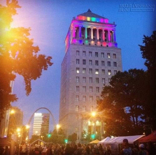 Tòa án dân sự tại thành phố St. Louis, bang Missouri. Công trình cao 13 tầng này nổi bật trong đêm với sắc màu cầu vồng trên đỉnh tòa nhà.
