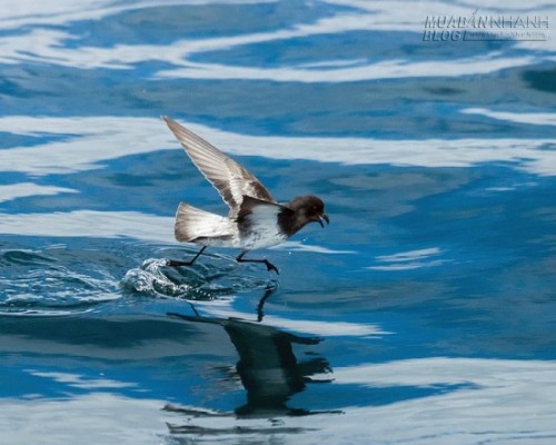 Không giống như các loài động vật trên, chim báo bão thực tế không hẳn là đi bộ trên mặt nước, dù cách chúng di chuyển khá giống. Chim báo bão chỉ đơn giản là đang di chuyển như bình thường chúng vẫn di chuyển trên mặt đất. Loài chim này không có lông chống thấm, không có màng chân. Chỉ bởi vì chúng nhẹ cân, tốc độ chạy nhanh nên giống như đang chạy trên mặt nước. Thực tế, chim báo bão chỉ có thể chạy quãng đường ngắn.