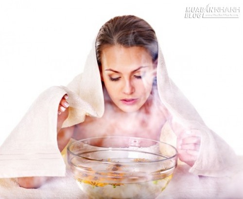 Xông hơi sẽ giúp các lỗ chân lông giãn nở để quá trình trị mụn diễn ra hiệu quả hơn. Xông hơi cũng giúp bạn thư giãn và hạn chế sự xuất hiện của mụn chìm. Bạn chỉ cần cho nước nóng ra bát, thêm một vài giọt tinh dầu bạn yêu thích, sau đó chùm chăn lên đầu và tiến hành xông hơi trong khoảng 10 phút. Bạn nhớ xông hơi đều cả hai bên cánh mũi nhé!