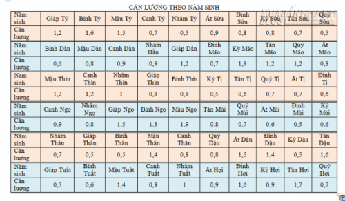 Cân lượng tháng sinh: Tháng 2 là 0,7