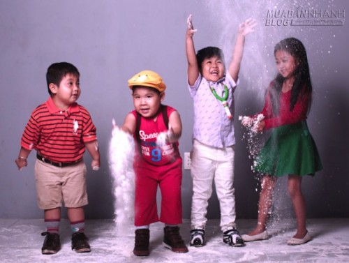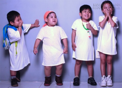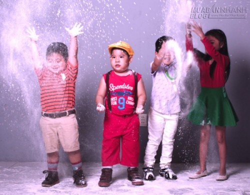 Đạo diễn Lê Bảo Trung cho biết, cả đoàn phim phải tập trung cao độ khi quay cảnh các nhóc tỳ nghịch ngợm để giữ an toàn cho từng bé.
