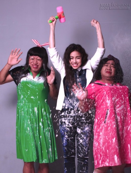 Đinh Ngọc Diệp có nhiều cảnh quay bị các 'học trò' hành hạ tơi tả đến mức muốn phát điên.