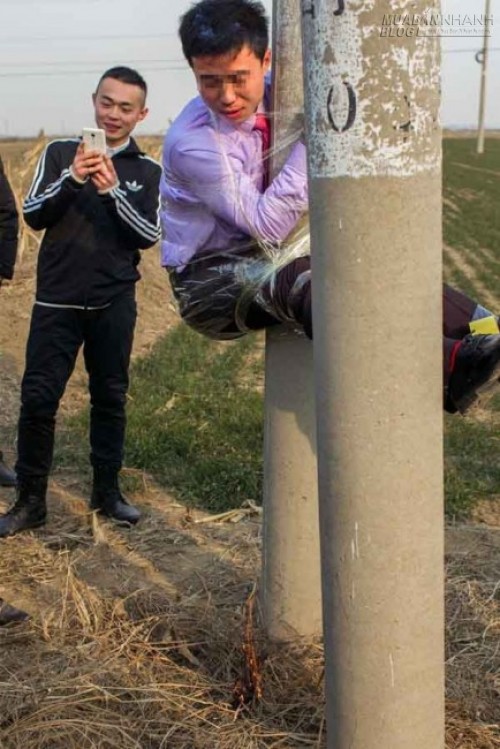 Dở khóc dở cười chú rể bị trói vào cột điện trên đường rước dâu, 63884, Nguyễn Thu Hương Blog MuaBanNhanh