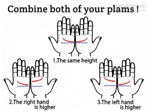 Bạn thử áp hai bàn tay lại với nhau và thử xem độ chênh lệch đường chỉ tay giữa hai bàn tay giống với hình nào sau đây. Kết quả sẽ khiến bạn bất ngờ về người bạn đời của bạn đấy!