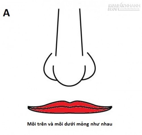 Môi trên dày, môi dưới mỏng