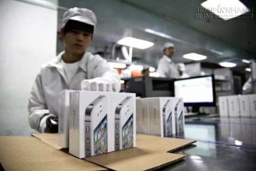Công nhân làm việc trong nhà máy lắp ráp iPhone. Ảnh: Maclife. |