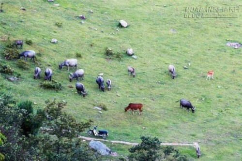 Bên cạnh những bãi đá cổ với nhiều hình thù kỳ quái nằm rải rác trên đồi cỏ, hình ảnh thường thấy ở đây là những đàn trâu, đàn bò đang thơ thẩn gặm cỏ rất hiền hòa.