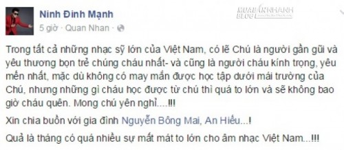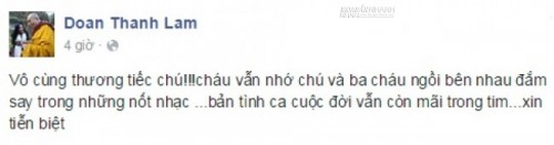 Gia đình, bạn bè, các ca sỹ, nhạc sỹ và đông đảo học trò của cố nhạc sỹ đều không khỏi bàng hoàng, xót xa trước tin buồn này.