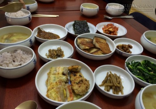 Tám tiếng qua đêm vụt nhanh như tích tắc trong chăn ấm, nệm êm. Chào đón chúng tôi vào buổi sáng thức dậy là bàn ăn đầy ắp các món do chính những phụ nữ Hàn vào bếp. Với người Hàn Quốc, bữa sáng là bữa quan trọng nhất và đông đủ thành viên. Bàn ăn được dọn ra với hàng chục chén đĩa, mỗi thứ chỉ đựng một chút nhưng vừa đủ và bắt mắt.