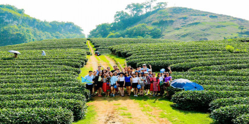 Chiều: Xe và hướng dẫn viên đưa Quý khách tham quan nông trường Mộc Châu tham quan đồi chè, chụp hình lưu niệm. Tìm hiểu về cuộc sống lao động tại đây, lưu lại những tấm hình với những sóng chè xanh ngát uốn lượn, tạo hình đầy quyến rũ giữa thảo nguyên mênh mông.